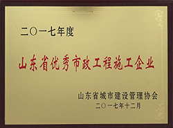 公司被評(píng)為“山東省**市政工程施工企業(yè)”